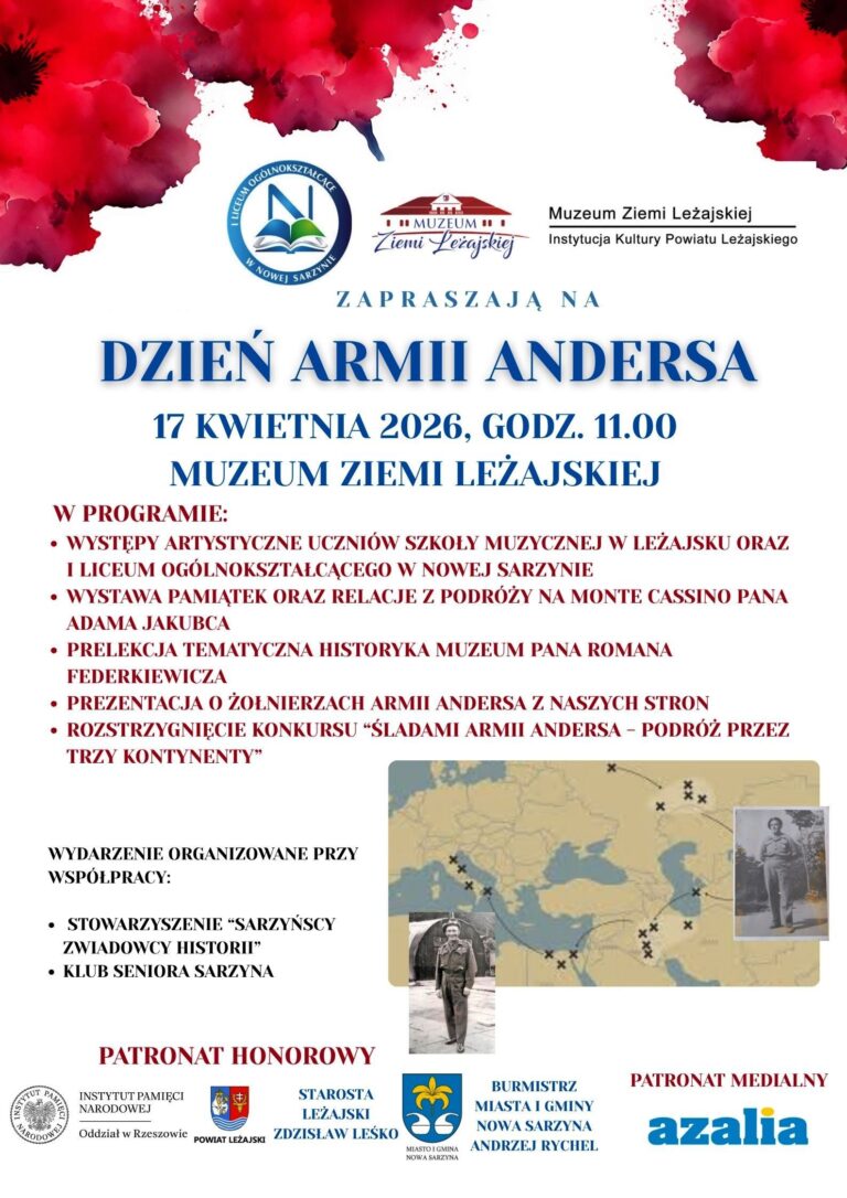 Muzeum Ziemi Leżajskiej oraz I Liceum Ogólnokształcące w Nowej Sarzynie zapraszają na Dzień Armii Andersa. Wydarzenie odbędzie się 17 kwietnia...