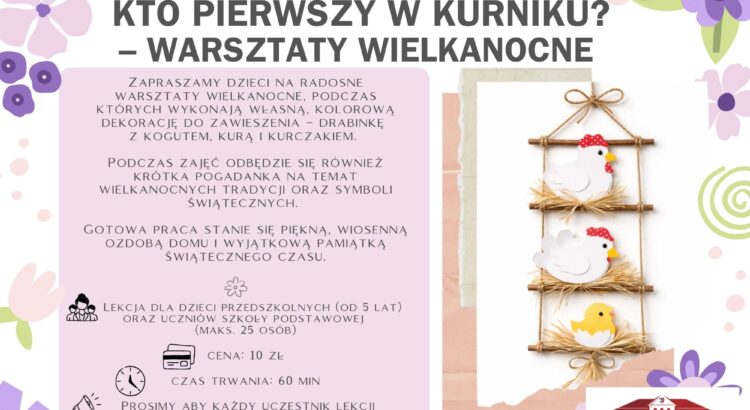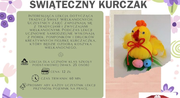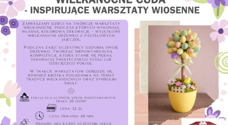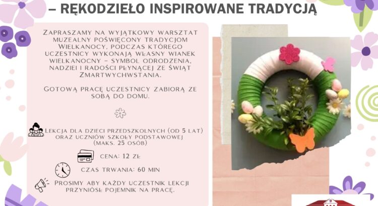 Zapraszamy na wyjątkowy warsztat muzealny poświęcony tradycjom Wielkanocy, podczas którego uczestnicy wykonają własny wianek wielkanocny – symbol odrodzenia, nadziei i radości płynącej ze Świąt Zmartwychwstania. Gotową pracę uczestnicy zabiorą ze sobą do domu. - Czas trwania lekcji: 60 min