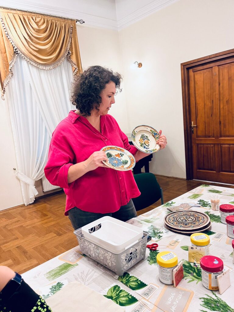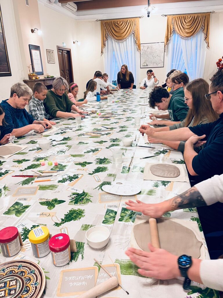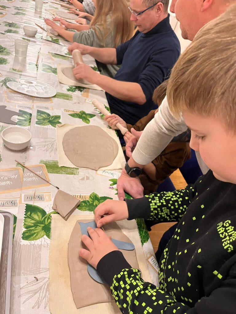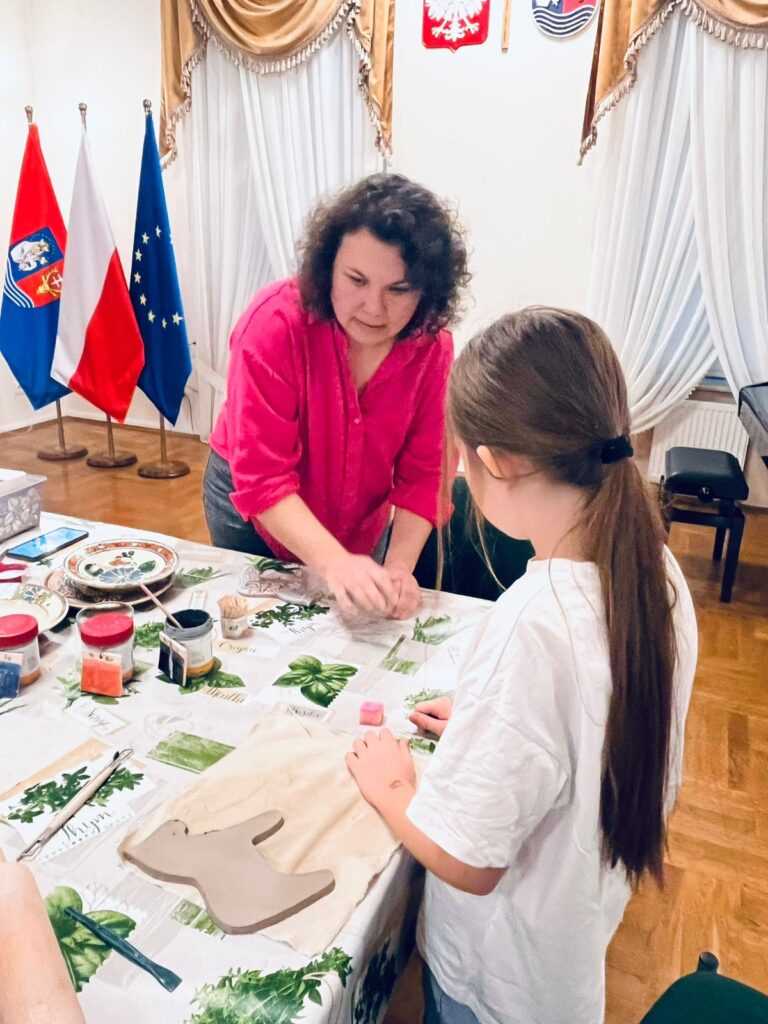 Na początku warsztatów prowadząca opowiedziała o dawnych technikach lepienia, zdobienia i wypalania naczyń oraz prostych form użytkowych. Uczestnicy mogli zobaczyć przykłady tradycyjnych wzorów, charakterystycznych dla ceramiki ludowej, a następnie samodzielnie przystąpili do pracy.
