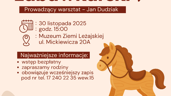 Muzeum Ziemi Leżajskiej zaprasza dzieci, rodziców i wszystkich miłośników rękodzieła na wyjątkowe spotkanie poświęcone sztuce zabawkarstwa ludowego. Tym razem uczestnicy przeniosą się w świat tradycyjnych, drewnianych zabawek, które od lat budzą zachwyt swoją prostotą i ciepłem naturalnego materiału.