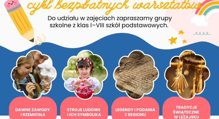 Do udziału w zajęciach zapraszamy grupy szkolne z klas I–VIII szkół podstawowych. To wyjątkowa okazja, by w ciekawy i twórczy sposób poznać dawne zwyczaje, opowieści oraz kulturę naszego regionu.