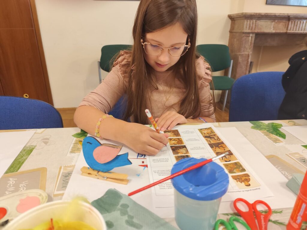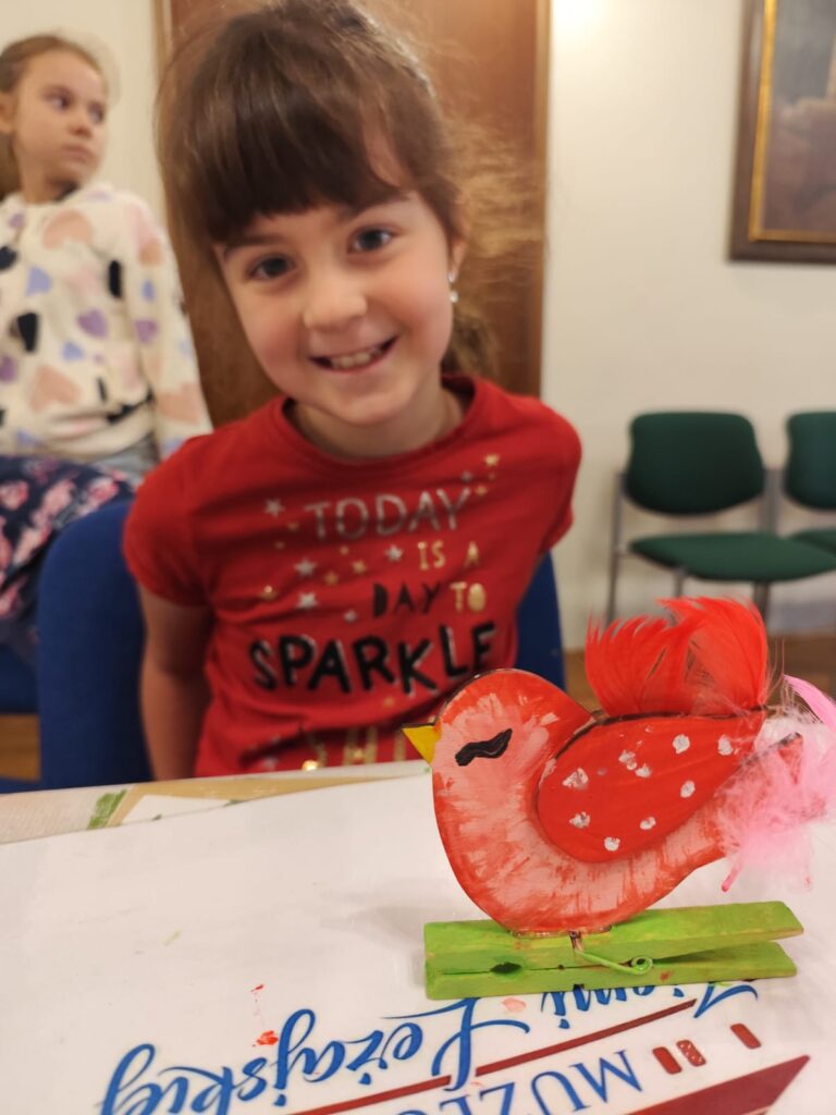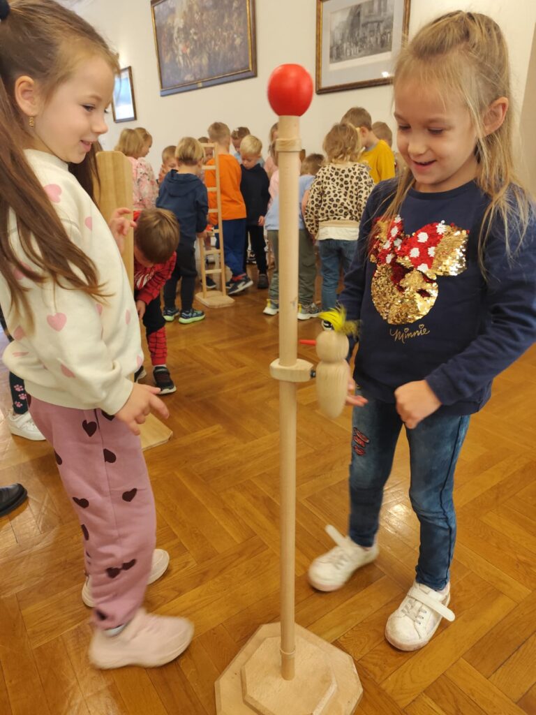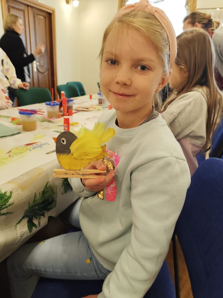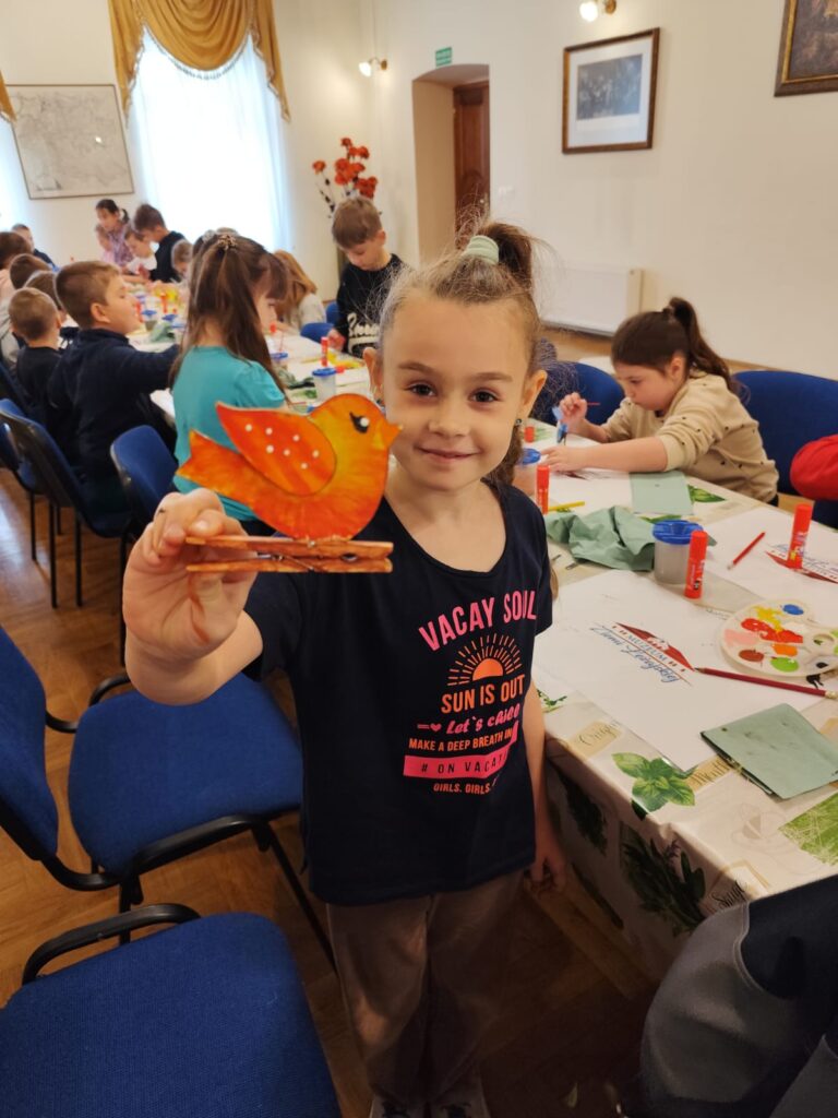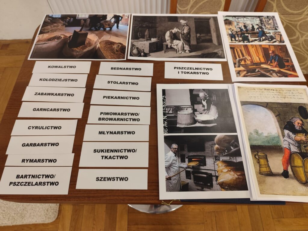 Szczególne miejsce w zajęciach zajmuje postać zabawkarza, którego praca była ściśle związana z naszym regionem. Dzieci mają okazję obejrzeć i przetestować dawne drewniane, ruchome zabawki w powiększonej formie, a następnie samodzielnie wcielają się w rolę twórcy, zdobiąc według własnego pomysłu konika lub ptaszka z drewna. Dodatkowo uczestnicy wypełniają karty pracy utrwalające zdobytą wiedzę o dawnych zawodach, a młodsze dzieci korzystają z kolorowanek przygotowanych specjalnie z myślą o nich.