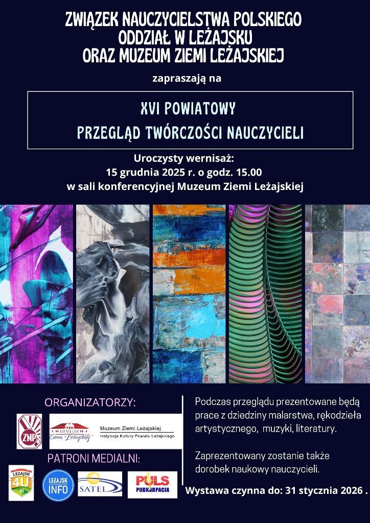 Muzeum Ziemi Leżajskiej oraz Związek Nauczycielstwa Polskiego Oddział w Leżajsku zapraszają na XVI Powiatowy Przegląd Twórczości Nauczycieli.