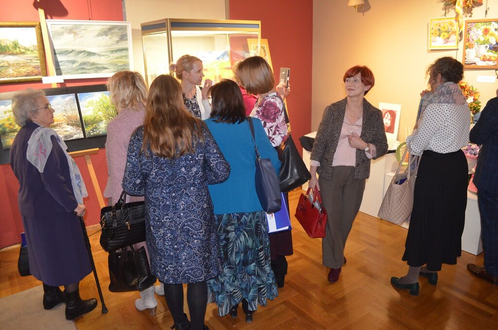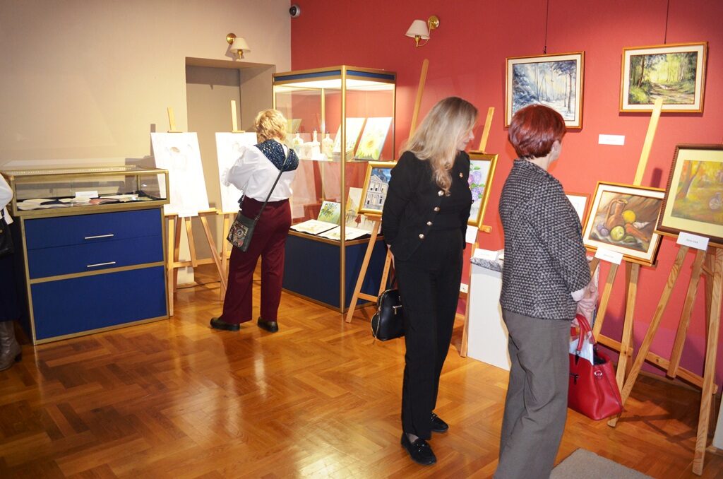 Po części oficjalnej odbyło się otwarcie wystawy. Zaprezentowano na niej prace plastyczne wykonane różnymi technikami: akwarelą, pastelami, piórkiem i tuszem, farbami akrylowymi i olejnymi, haftem krzyżykowym, ikony. Pojawiły się także prace wykonane techniką decoupage: szkatułki, skrzynki, tace, butelki, bombki. Na wernisażu prezentowano tomiki wierszy oraz publikacje naukowe.
